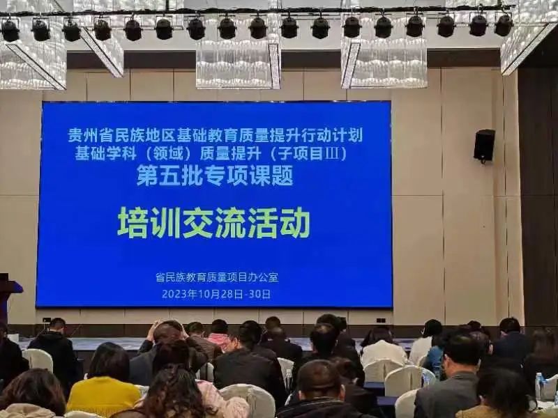 2023年10月28日至30日,由贵州省教育科学规划领导小组办公室、贵州省民族教育质量项目办公室联合组织开展的贵州省民族地区基础教育质量提升行动计划基础学科(领域)质量提升(子项目Ⅲ)第五批专项课题培训研讨活动在贵阳顺利举行。培训研讨活动共分专家专题讲座和分组研讨交流指导活动,共2个环节进行。