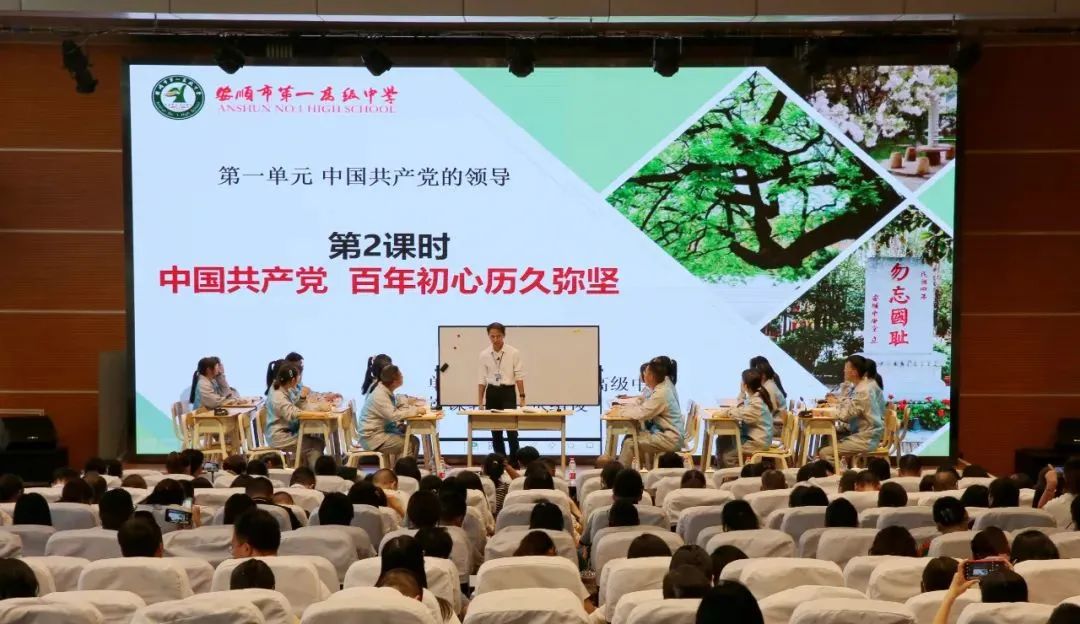 贵阳市第一中学陈金锋老师,安顺市第一高级中学张绪俊老师,凯里市第一中学刘莹老师展示《中国共产党的领导》为主题的高三一轮同课异构复习课。