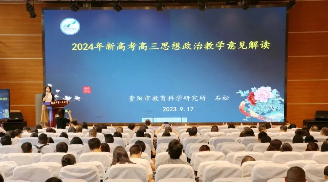 为深入贯彻落实党的二十大精神,贯彻落实习近平总书记关于教育的重要论述,准确把握高考备考方向,优化高考复习策略,科学高效推进全省普通高中政治学科备考工作,助推我省教育高质量发展,2023年9月16日至17日,贵州省2024届新高考学科复习备考研讨暨高三“同课异构”活动(政治学科)在安顺市第一高级中学举行。活动以“立足课标,高效备考”为主题,以学术讲座、经验交流、示范课的形式,针对新课标、新教材、新高考背景下政治学科的高三教学计划、教研组织、课堂建设等方面开展。