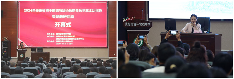 在纪念习近平总书记在学校思想政治理论课教师座谈会上发表重要讲话五周年之际,为引导广大师生重温“3·18”重要讲话精神,全面贯彻党的教育方针,落实立德树人根本任务,推动我省中小学思政课高质量发展,贵州省教育科学院举办了中小学道德与法治教研员教学基本功指导专题教研活动。活动于2024年3月25和4月8日分初中和小学两个学段开展,分别由贵阳市第一实验中学、贵阳市第二实验小学承办,贵阳市教育科学研究所、贵阳市观山湖区教育科研培训中心、贵阳市云岩区教师进修学校协办。全省各市(州)小学和初中道德与法治教研员和学科骨干教师共约400人参加活动。