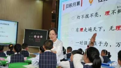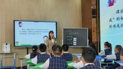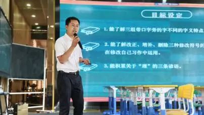 第四节,三年级上册《语文园地三》,由织金县第一小学韩德军老师进行课前说课。韩老师以《秉承守正创新 用好统编教材》为题,从目标设定、情境的设置、学习任务的设计、资源的选择等方面进行了说课,分享了任课教师对这节课的思考。织金县第一小学谭巧云老师进行现场授课。谭老师创设贯穿全课的学习情境——“我爱语文”趣味游园会,将每个板块的学习巧妙融入到情境中,引导学生在轻松愉快的氛围中学习口字旁的字的归类与运用、认识和使用修改符号、积累运用谚语,环环相扣。