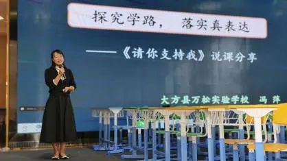 第二节,六年级上册口语交际《请你支持我》,由大方县万松实验学校冯萍老师进行课前说课。冯老师以《探究学路,落实真表达》为题,从学什么、用什么学、怎么学、学得怎么样四个方面进行了说课。毕节市七星关区市西街道中心校刘艳老师进行现场授课。刘老师借《杨氏之子》的故事巧妙引出交际话题,借助视频创设了真实的交际情境:说服校长,在学校开展一次义卖活动。刘老师引导学生结合情境学习交际方法,在情境中实践,掌握交际的要领,最后回到真实的情境,学以致用。