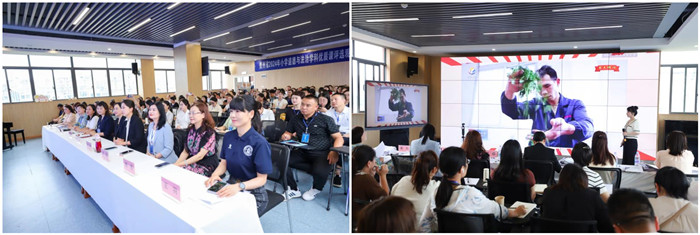 本次评选内容包含专业技能展示和课堂教学展示两个部分。专业技能展示设置两个项目:观课评课和时政述评。时政述评内容结合学生学段特征和课程教材有关内容,紧密围绕党的二十大精神,分析时政热点,开展时事教育,坚持正确价值导向,引导学生了解国情世情,坚定理念信念,激发爱党爱国热情,增强社会责任感和使命感;在观课评课中,选手集体观摩一节现场参评课,观摩结束,集中撰写评课稿,从教学设计、教学过程、教学效果、教学特色等方面对课例进行评价,体现观课个人视角和思考。