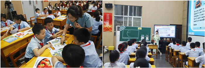 在课堂展示环节,针对三年级和五年级的学生开展了“同课异构”的教学活动。参赛教师本着大单元整体教学的设计观,以探究语篇主题意义为导向,用信息技术赋能课堂教学,创设多模态的语言学习环境,将评价贯穿整堂课教与学的全过程,注重发挥学生的主观能动性,引导学生成为各类评价活动的主体,落实教-学-评一体化的设计理念。