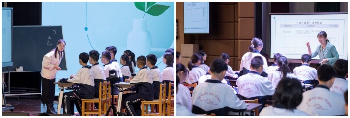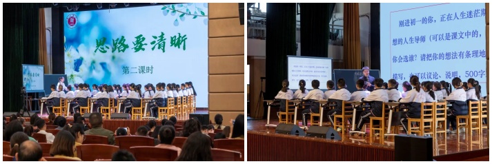 八年级写作课《语言要连贯》由贵阳市普瑞学校教师范文娟和江苏省无锡市教育科学研究院教研员刘胜男执教。两位老师以“写”贯穿课堂,环节设计各具特色,范老师通过补写、改写、续写等环节,带着学生们学习话题的统一、顺序的合理、衔接的自然等语言连贯的方法;刘老师创新地运用多种文本材料,拓宽了语言要连贯的文本载体。学生们在课堂上习得了实用类文本、文学类文本多种语料中语言要连贯的方法,并在课堂上迁移运用、完成书信写作。