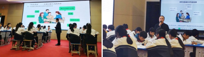 省级兼职教研员梅永华、吴林亚,市(州)教研员或领队邓美、宋钊锋、谭敏、韩丽薇,分别从课标解读、教材运用、情景创设、问题设置等方面展开评课议课,让老师们从教学依据思考教学、从教学目标的达成思考方法、从新课标向老教材的过渡思考评价,指引了课堂教学实际的方向。