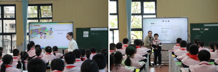 来自全省各地的400多名老师参加了本次活动。全省九个市(州)推荐的十位教师分别展示了人教版数学四年级的《除数是两位数的笔算除法》和《烙饼问题》两节课。授课教师基于对课程标准与教材的深刻理解,秉持“以学生为中心”的教育理念,将课堂真正交还给学生。他们不仅关注学生的学习进程,更紧密联系生活实际,通过构建具体而生动的教学情境,引导学生主动探索知识,精准把握教学关键,激发学生的探究欲望与学习潜能。