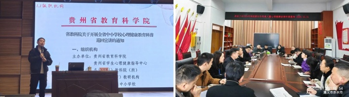 遵义市教育体育局和教育科学研究院将省教科院关于开展全省中小学校心理健康教育科普巡回宣讲与省教育厅办公室2024年度(第二期)学校家庭社会协同育人活动在“宣讲队伍”和“宣讲内容”进行有机结合,并于12月19日在老城小学对县级宣讲团队就“组织机构”“宣讲目标”“宣讲形式”“课程研发”和“资源包使用”等方面进行了培训,在增强培训有效性的同时,减少了家长反复参与活动的不便。