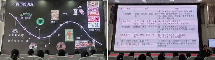 在《货币的使用与世界货币体系的形成》一课中,遵义市南白中学张卓老师以货币演变为脉络,通过史料分析培养学生实证意识;浙江慈湖中学应启明老师则对教材内容重新整合并结合学术前沿,以问题链教学的模式层层递进,得到参会专家及教师的一致好评。