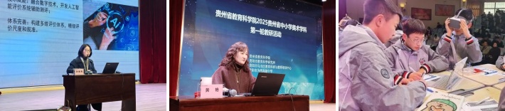 贵阳市教科所美术教研员李莎老师以《跨学科视域下数字媒体艺术在中小学美术教学中的创新实践研究》为题,聚焦“红飘带”长征数字科技艺术馆教学实践,创新构建“艺术+科技+思政”融合教学模式,实现文化传承与美育创新深度融合;贵州省中小学美术学科兼职教研员黄艳作题为《精准施策,优化教学——中小学美术课堂观察与思考》的讲座,从课堂观察的四个维度、教学评一致性及小组合作方式等方面和与会老师进行了深度的交流分享。并对即将开展的“高中美术优质课评选观摩交流活动”的相关要求进行了解读,进一步明确方向、理清思路。