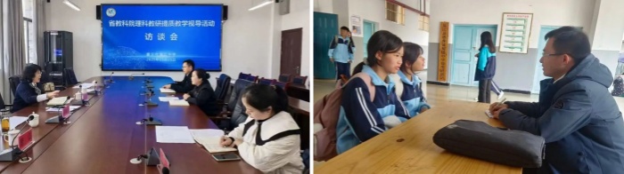 各视导组分层分类开展座谈访谈,与市(州)、县(市、区)教研部门交流工作部署与推进情况,梳理难点、共商对策;深入学校与校长、教研组长、教师座谈,了解学校在理科质量提升中的举措、困难与下一步计划,听取教师在专业发展、教研支持等方面的诉求;与学生面对面交流,关注其理科学习兴趣、实验参与及课堂学习等。通过多角度对话,摸清实情、汇集智慧,为精准指导提供依据。