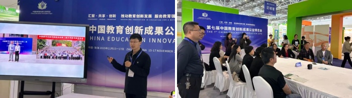 2025年11月15日至17日,第七届中国教育创新成果公益博览会在广东珠海国际会展中心隆重举办。贵州省教育科学院张学杰主持的“助力教师上好小学数学课:‘三法+三步曲+小先生’三位一体深度教学模式培育学生综合素养二十年探索与实践”教学成果,作为贵州省基础教育教学成果特等奖获奖优秀项目受邀参展,吸引了来自全国的教育同行驻足关注交流。