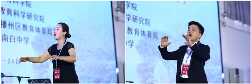 活动的一大突破是合唱指挥技能展示首次采用指挥合唱团现场演唱的形式进行。这种方式尽管面临困难挑战较多,但它真实还原了合唱指挥的场景,既可检测和反馈出指挥者在此方面所具备的素养,也能如实呈现合唱团对指挥和作品的理解与表达,更体现出了在全省教育高质量发展背景下对音乐教育提出更高要求的积极回应——引导教师发展特色优势素养,为高中特色教育发展提供有力支撑。