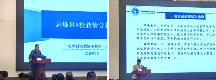 为深入贯彻《教育强国建设规划纲要(2024-2035年)》要求,加快特色教育强省建设,落实全省中小学理科教研提质部署,贵州省教育科学院于2026年3月18日至20日在贵阳举办2026年全省教研工作研讨暨教情分析培训活动。省教育厅、省教科院相关负责同志、省级视导组专家,9个市(州)、17个重点推进县(市、区)教科院(所、室)主要负责同志,以及153所样本校分管校领导共200余人现场参会。本次活动以总结理科教研提质前期成果为基础,通过工作通报、经验交流、专项培训、分组研讨等形式,凝聚提质共识、明晰实操路径,推动教研提质从思想动员转向落地实操,助力全省中小学理科教育质量提升迈入新阶段。